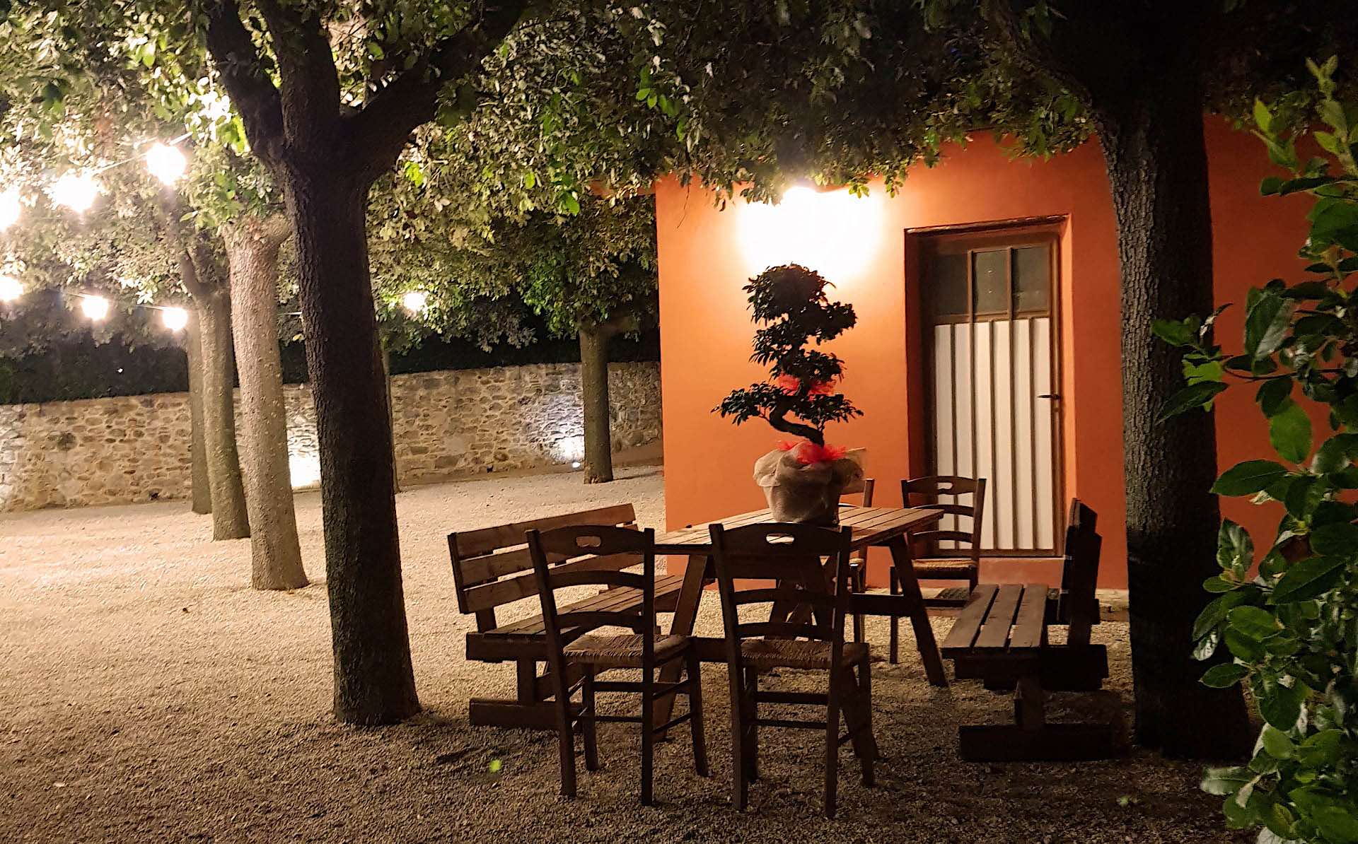 - Ambiente elegante di 120 mq coperto in legno con protezioni laterali trasparenti in caso di pioggia, per cene e buffet fino a 100 persone; terrazza antistante fino a 100 persone
